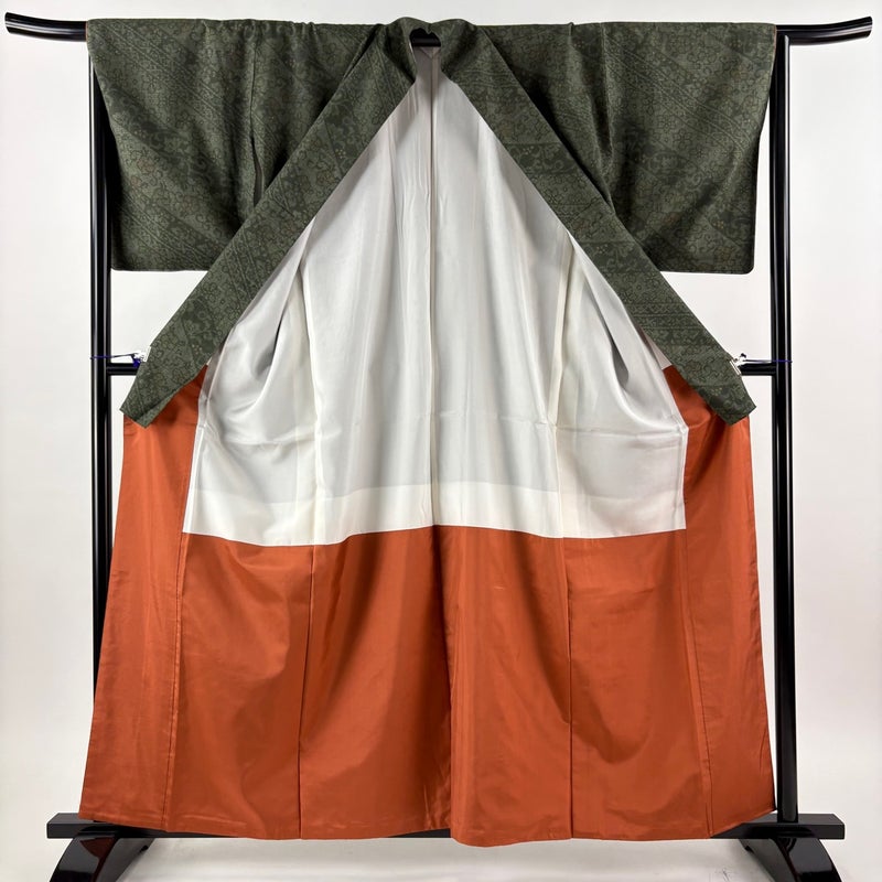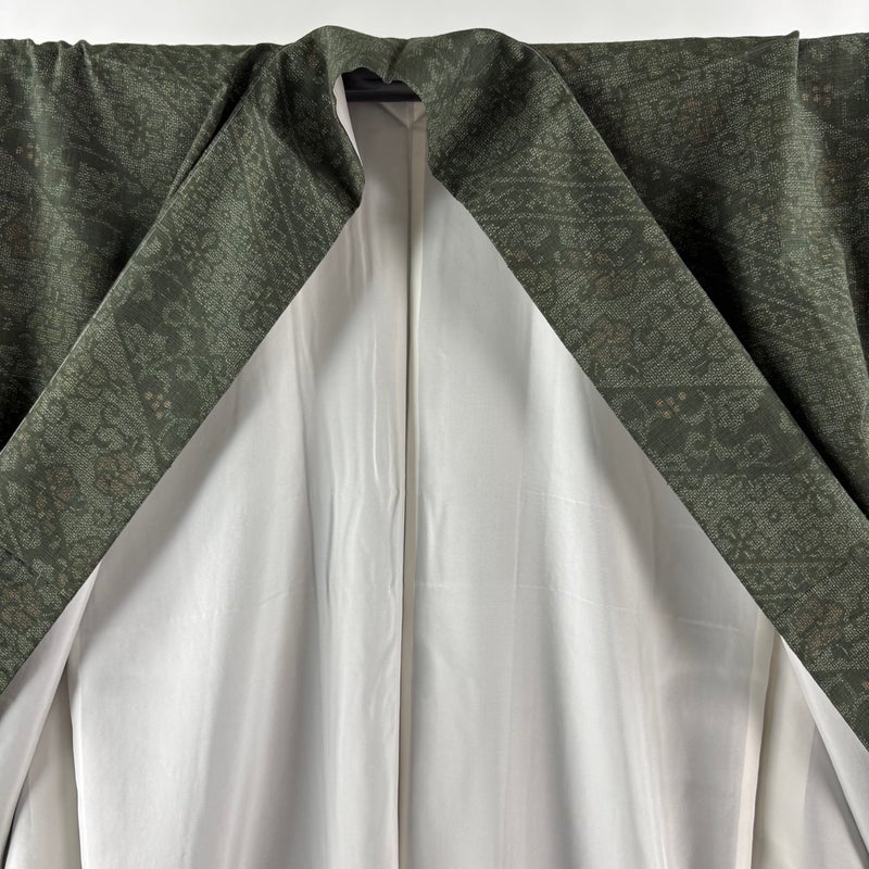 【紬】 緑系 深緑 秀品 A 約160cm~約169cm 裄丈66cm (M)size 袖丈49cm 9990-29990 美品 五万以下