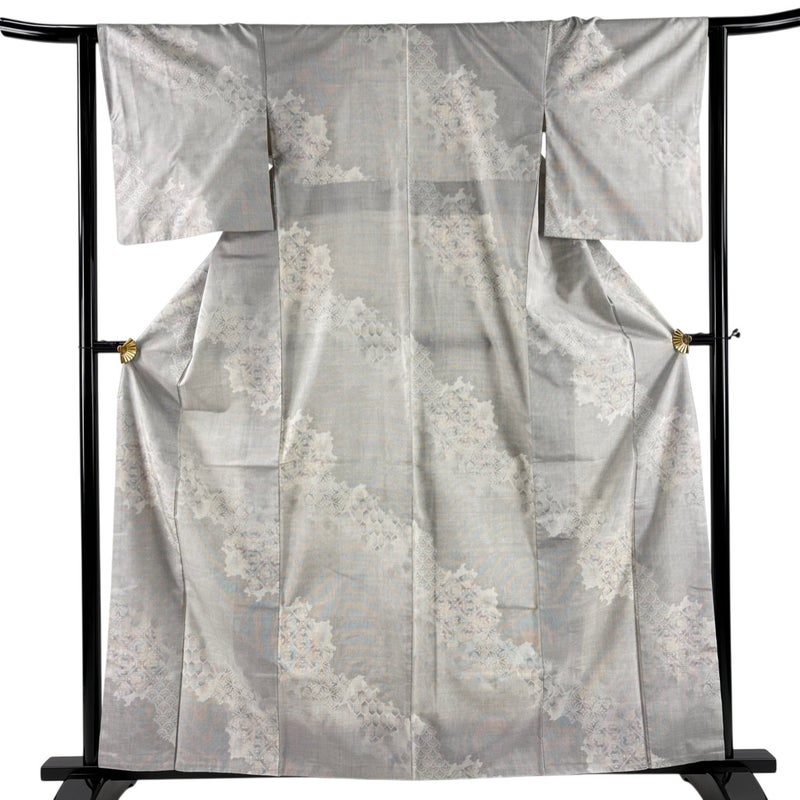 【紬】 灰色系 灰色 秀品 B 約160cm~約169cm 裄丈63cm-64cm (S)size 袖丈49cm 4000-7980 二万以下