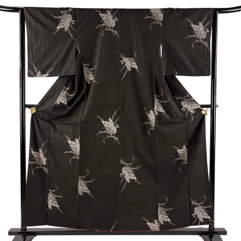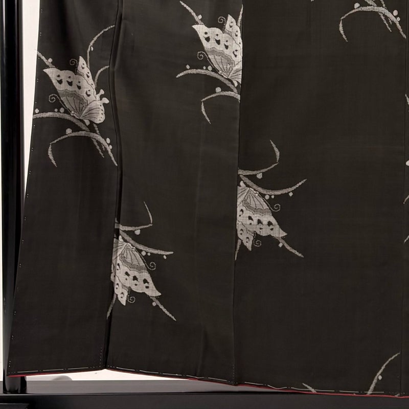 【着物ランク】秀品 【素材】正絹 【身丈】約158.5cm 【裄丈】約64cm 【袖丈】約49cm 【袖幅】約33cm 【前幅】約24cm 【後幅】約28.5cm 【サイズ】M 【着物仕立て】袷 【着用時期】10~5月 【状態ランク】ランクB 【着物着用シーン】気軽なパーティー、観劇、食事会、正月、気軽なお茶会、街着