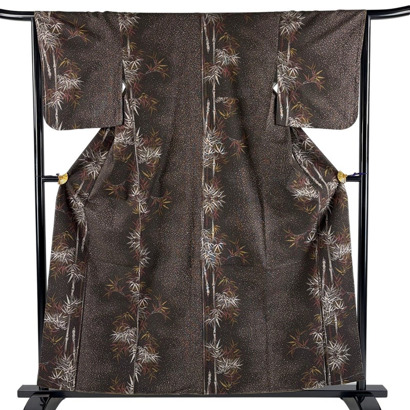 【着物ランク】秀品 【素材】正絹 【身丈】約158cm 【裄丈】約65.5cm 【袖丈】約49.5cm 【袖幅】約33cm 【前幅】約24cm 【後幅】約28cm 【サイズ】M 【着物仕立て】袷 【着用時期】10~5月 【状態ランク】ランクA 【着物着用シーン】気軽なパーティー、観劇、食事会、正月、気軽なお茶会、街着
