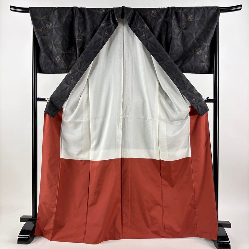【着物ランク】秀品 【素材】正絹 【身丈】約170.5cm 【裄丈】約69.5cm 【袖丈】約49.5cm 【袖幅】約35.5cm 【前幅】約23cm 【後幅】約30.5cm 【サイズ】L 【着物仕立て】袷 【着用時期】10~5月 【状態ランク】ランクB 【着物着用シーン】気軽なパーティー、観劇、食事会、正月、気軽なお茶会、街着