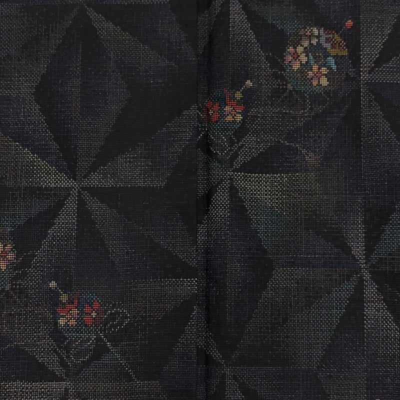 【紬】 灰色系 黒灰 秀品 B 約170cm~約179cm 裄丈69cm以上 (L)size 袖丈49cm 4000-7980 二万以下