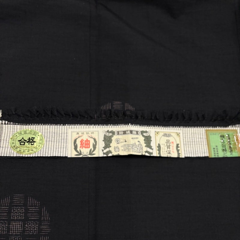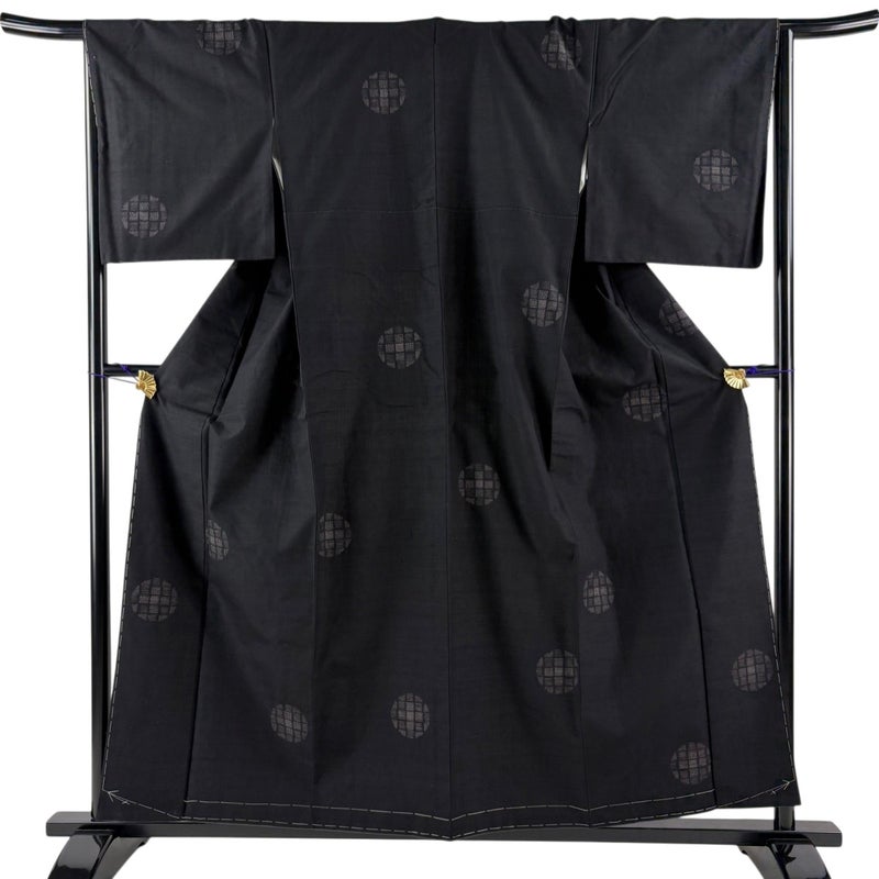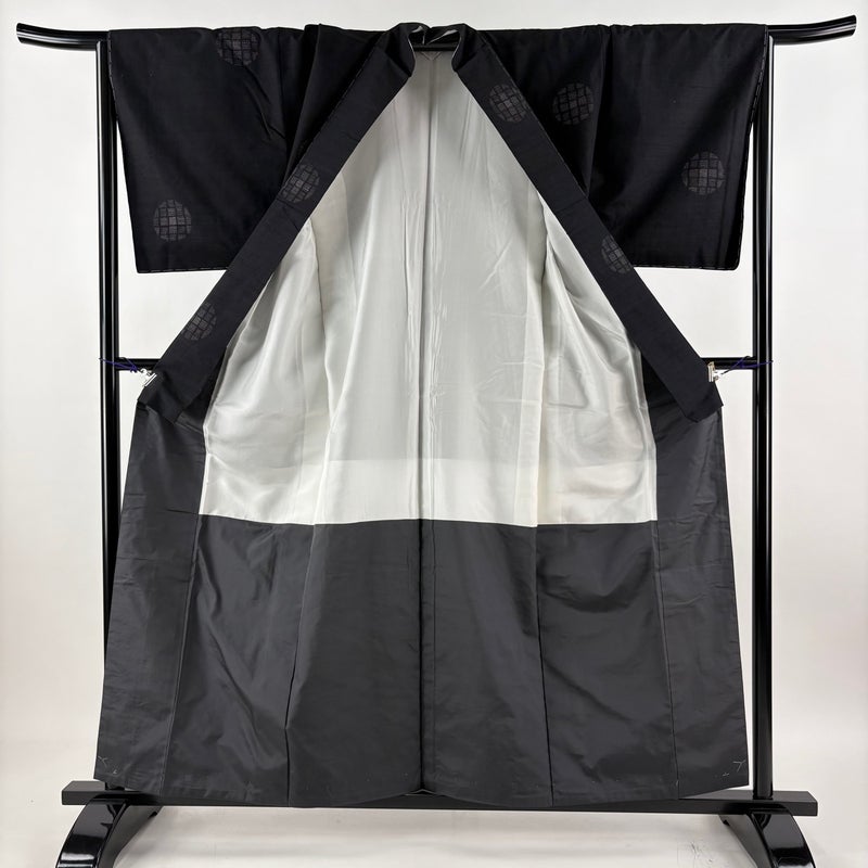【紬】 黒系 黒 秀品 B 約150cm~約159cm 裄丈65cm (M)size 袖丈49cm 4000-7980 二万以下