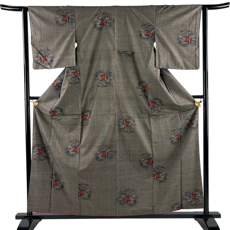 普段着やおしゃれ着として人気の紬でございます。 元々は日常着として着用していたので、その土地の風土に合った様々な種類がある素敵な一品です。 ※身丈・裄丈の縫込みの長さは測っておりません。 右衿に薄いシミ、左袖前後にシワがございます。 リユース品としては目立った染み傷なく、状態の良いお品でございます。 ※なお、厳しく商品の状態確認を行っておりますが、記載の汚れ以外にも見落とし箇所がある可能性がある旨ご了承いただけますと幸いです。 沢山の商品の中からご覧いただき誠にありがとうございます。 【PR2】
