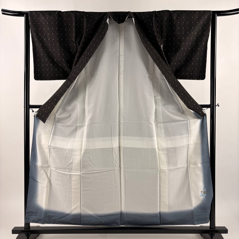 【紬】 黒系 墨色 秀品 A 約150cm~約159cm 裄丈65cm (M)size 袖丈48cm 7990-9980 美品 二万以下