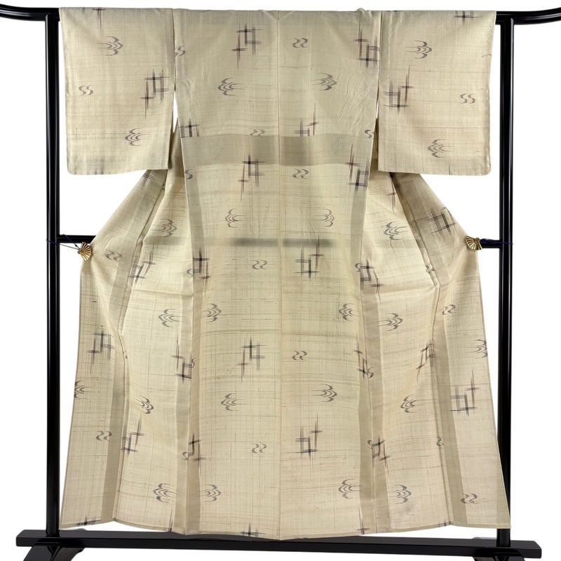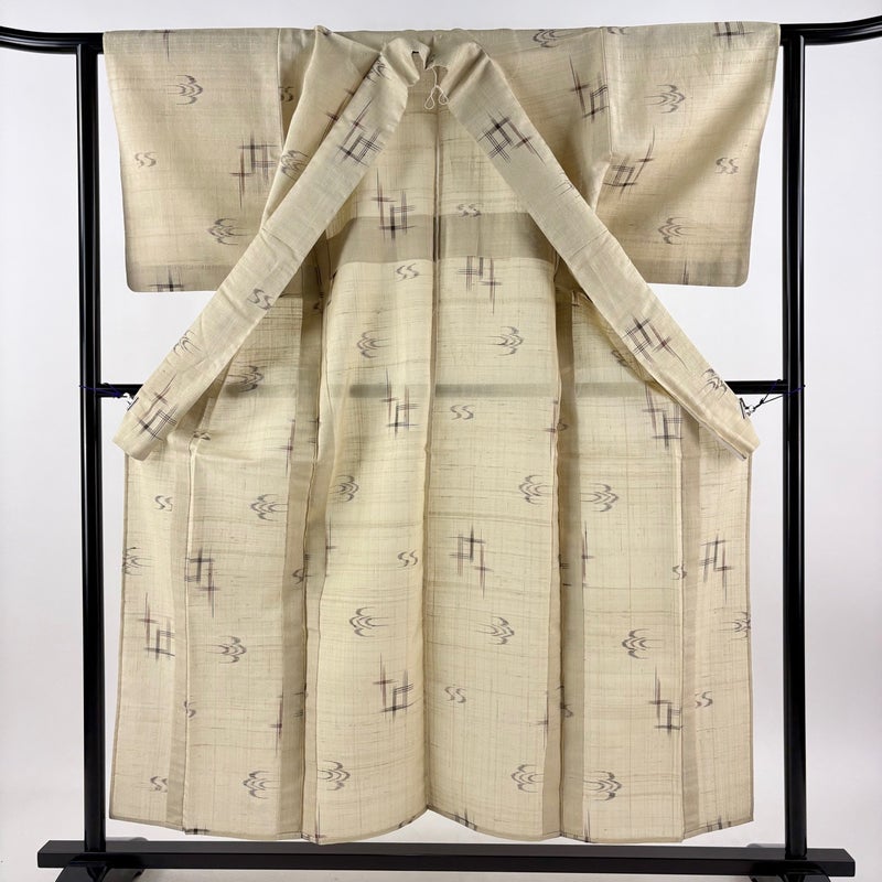 【紬】 白系 ベージュ 秀品 A 約150cm~約159cm 裄丈62cm以下 (S)size 袖丈49cm 9990-29990 美品 二万以下