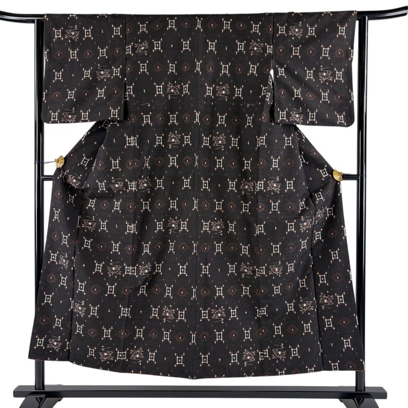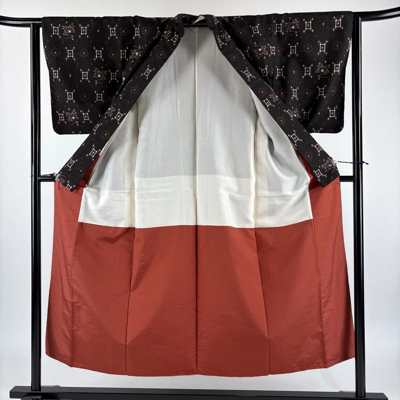 【紬】 黒系 墨色 秀品 B 約150cm~約159cm 裄丈63cm-64cm (S)size 袖丈49cm 4000-7980 二万以下
