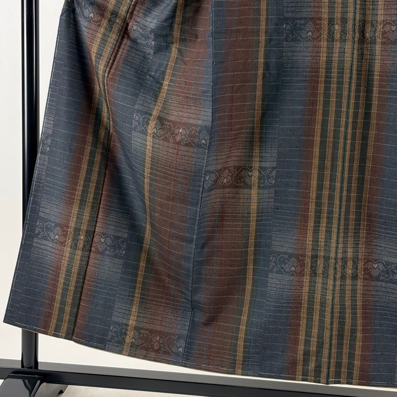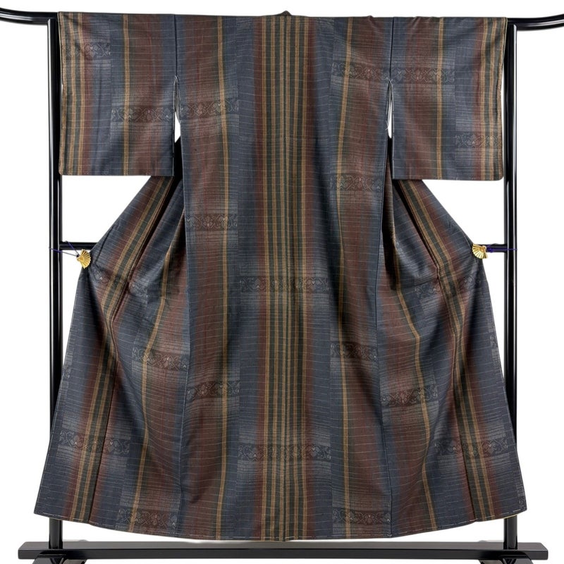普段着やおしゃれ着として人気の紬でございます。 元々は日常着として着用していたので、その土地の風土に合った様々な種類がある素敵な一品です。 ※身丈・裄丈の縫込みの長さは測っておりません。 上前などにシワがございます。 胴裏にホックシミ、八掛にシワがございます。 リユース品としては目立った染み傷なく、状態の良いお品でございます。 ※なお、厳しく商品の状態確認を行っておりますが、記載の汚れ以外にも見落とし箇所がある可能性がある旨ご了承いただけますと幸いです。 沢山の商品の中からご覧いただき誠にありがとうございます。 【PR2】
