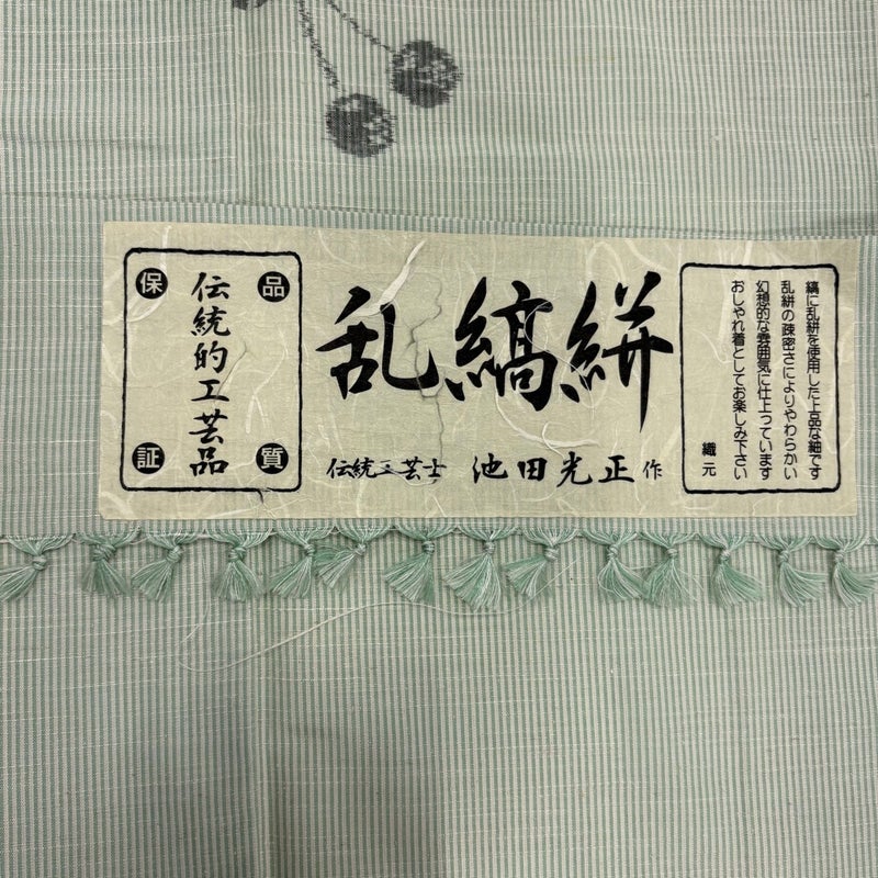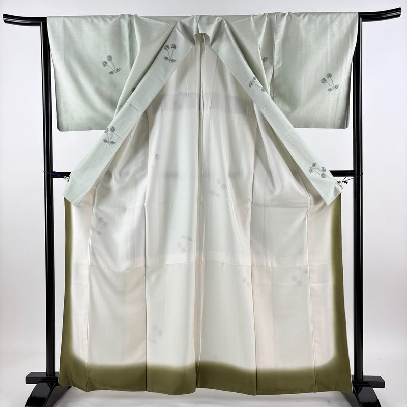【紬】 緑系 薄緑 秀品 A 約160cm~約169cm 裄丈63cm-64cm (M)size 袖丈49cm 7990-9980 美品 二万以下