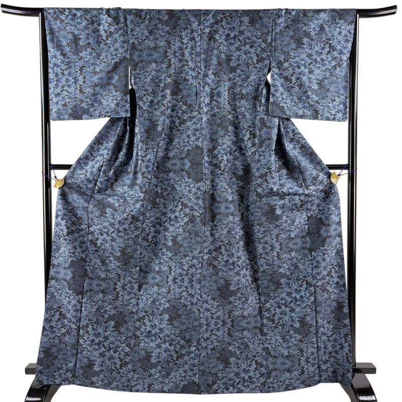 【着物ランク】秀品 【素材】正絹 【身丈】約167cm 【裄丈】約65.5cm 【袖丈】約49cm 【袖幅】約35cm 【前幅】約24cm 【後幅】約29.5cm 【サイズ】M 【着物仕立て】袷 【着用時期】10~5月 【状態ランク】ランクB 【着物着用シーン】気軽なパーティー、観劇、食事会、正月、気軽なお茶会、街着