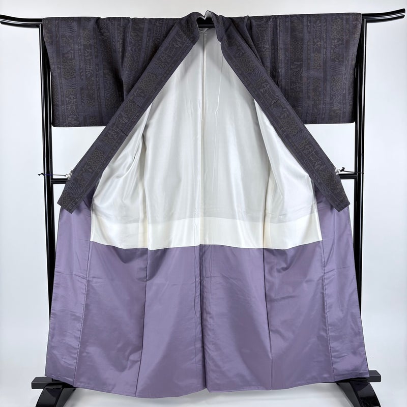 【紬】 紫系 紫 秀品 A 約160cm~約169cm 裄丈66cm (M)size 袖丈46cm以下 7990-9980 美品 二万以下