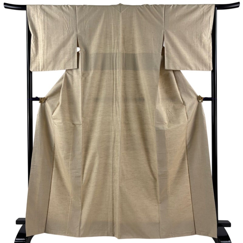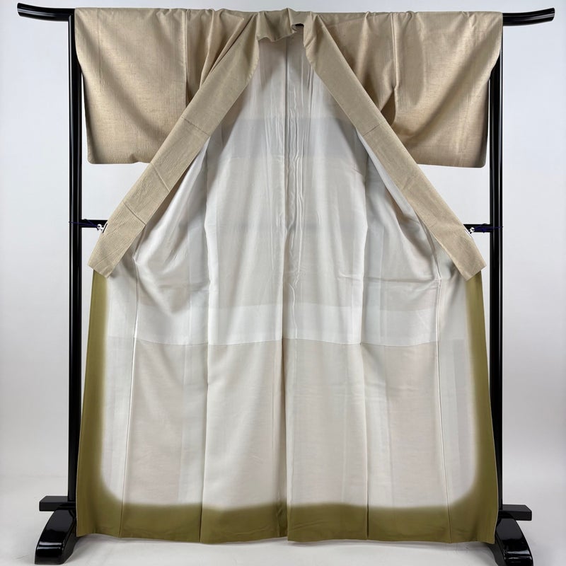 【紬】 白系 ベージュ 秀品 A 約160cm~約169cm 裄丈66cm (M)size 袖丈49cm 7990-9980 美品 二万以下