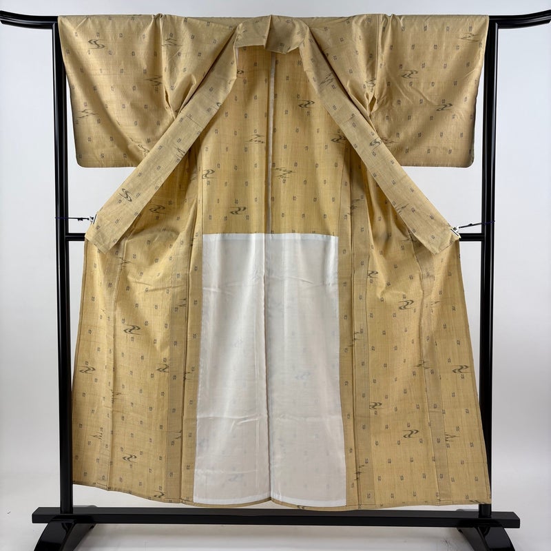 【紬】 白系 ベージュ 名品 B 約150cm~約159cm 裄丈63cm-64cm (M)size 袖丈46cm以下 9990-29990 五万以下