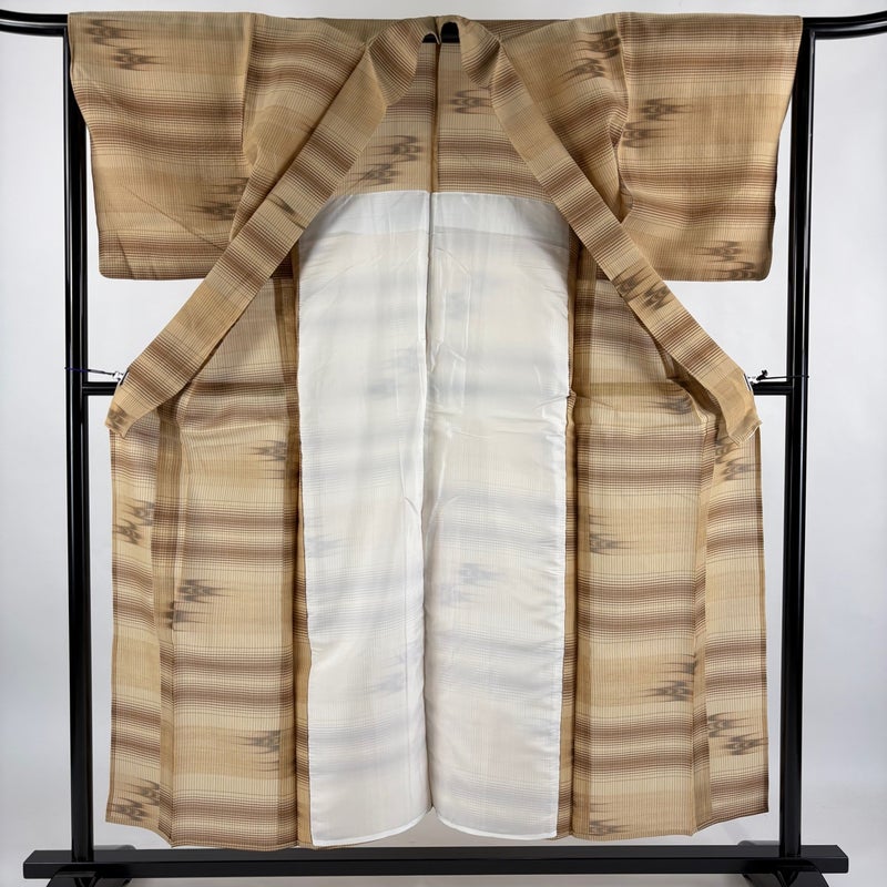 【紬】 茶系 薄茶色 名品 A 約150cm~約159cm 裄丈65cm (M)size 袖丈48cm 9990-29990 美品 五万以下