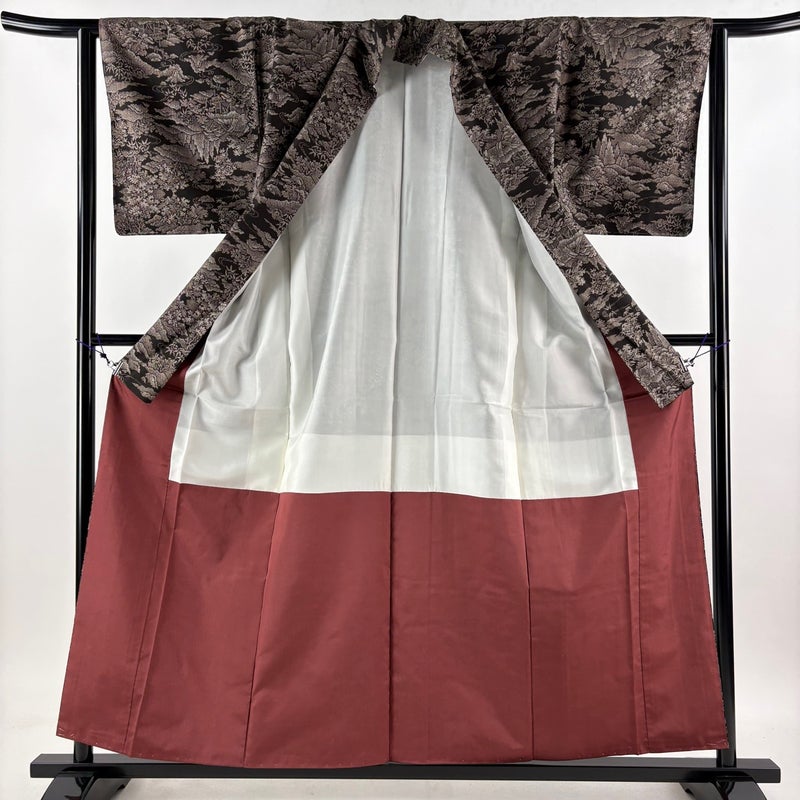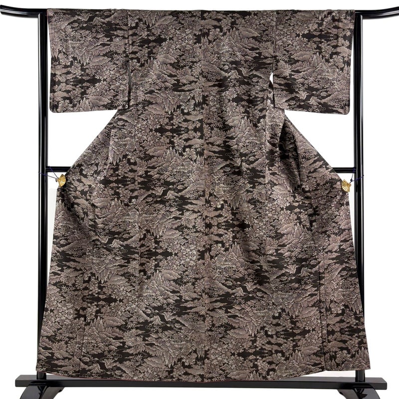 【着物ランク】逸品 【素材】正絹 【身丈】約158cm 【裄丈】約63cm 【袖丈】約46cm 【袖幅】約32.5cm 【前幅】約24cm 【後幅】約30cm 【サイズ】S 【着物仕立て】袷 【着用時期】10~5月 【状態ランク】ランクA 【着物着用シーン】気軽なパーティー、観劇、食事会、正月、気軽なお茶会、街着