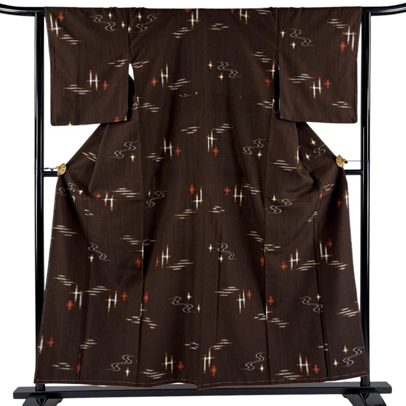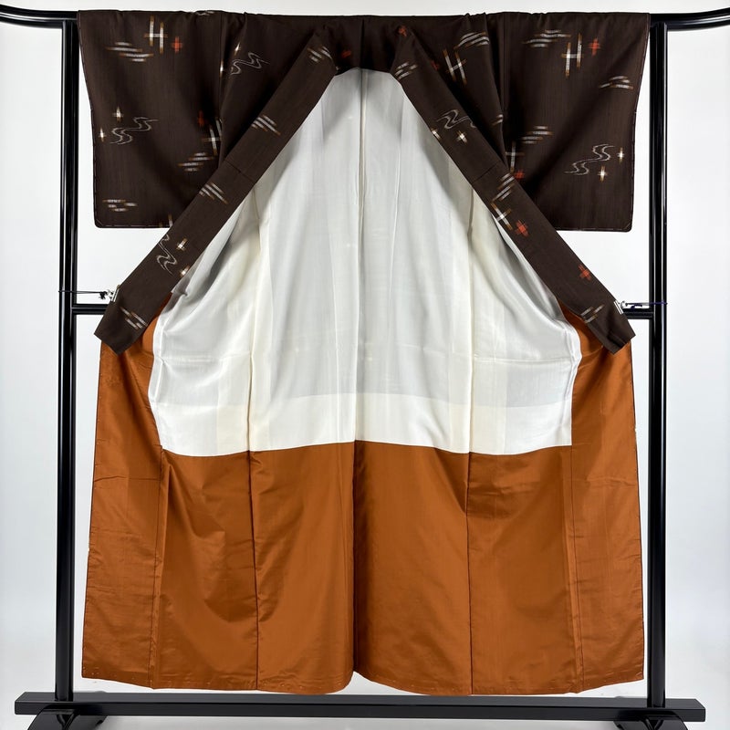 【紬】 茶系 焦茶色 秀品 A 約150cm~約159cm 裄丈63cm-64cm (M)size 袖丈49cm 7990-9980 美品 二万以下