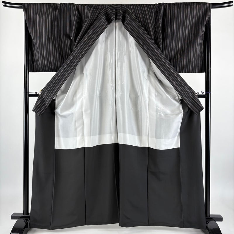 【紬】 黒系 黒 秀品 B 約160cm~約169cm 裄丈69cm以上 (L)size 袖丈50cm-60cm 4000-7980 二万以下