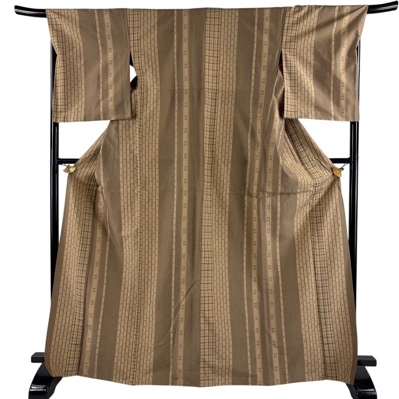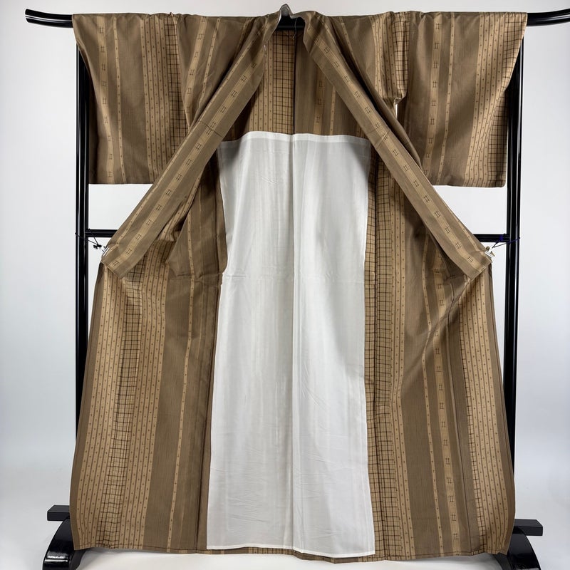 【紬】 茶系 薄茶色 秀品 B 約160cm~約169cm 裄丈69cm以上 (L)size 袖丈50cm-60cm 9990-29990 二万以下