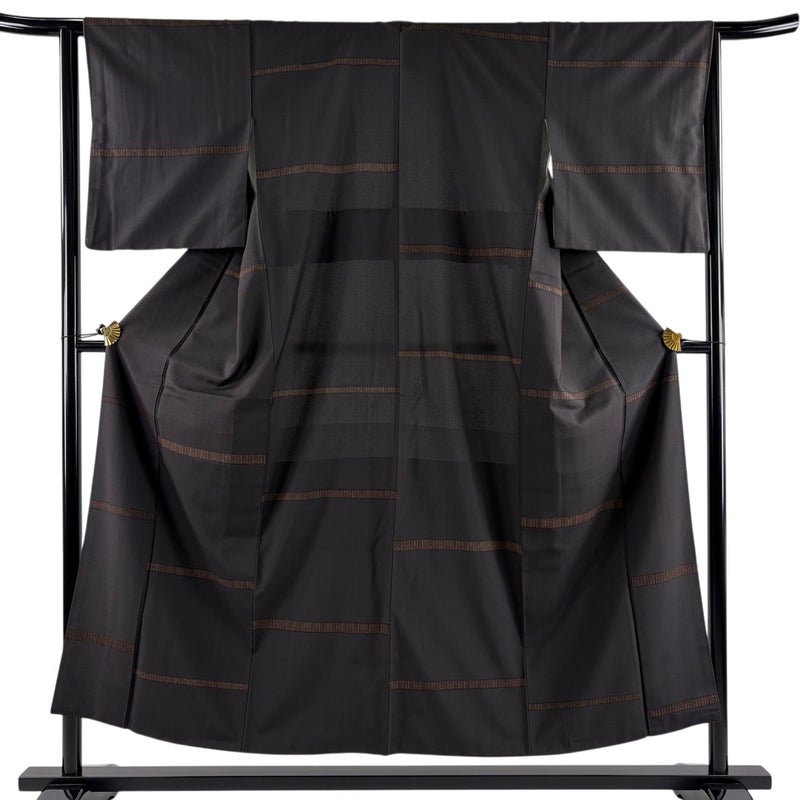 【紬】 黒系 墨色 秀品 B 約150cm~約159cm 裄丈63cm-64cm (S)size 袖丈48cm 4000-7980 二万以下