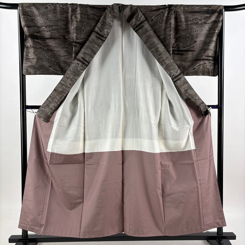 【紬】 茶系 焦茶色 秀品 B 約150cm~約159cm 裄丈66cm (M)size 袖丈46cm以下 4000-7980 二万以下