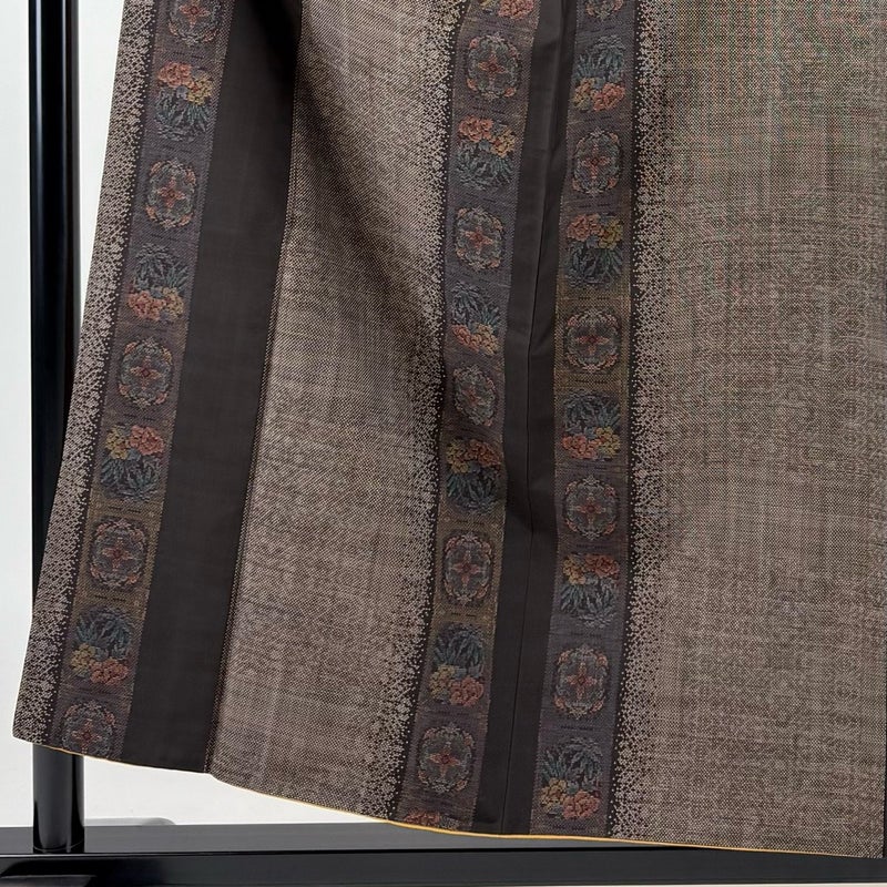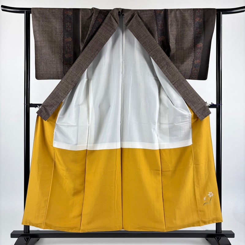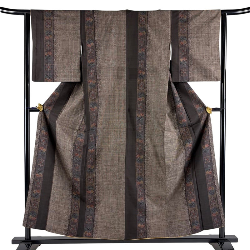 【着物ランク】秀品 【素材】正絹 【身丈】約156cm 【裄丈】約62.5cm 【袖丈】約48.5cm 【袖幅】約32.5cm 【前幅】約24cm 【後幅】約29.5cm 【サイズ】S 【着物仕立て】袷 【着用時期】10~5月 【状態ランク】ランクA 【着物着用シーン】気軽なパーティー、観劇、食事会、正月、気軽なお茶会、街着