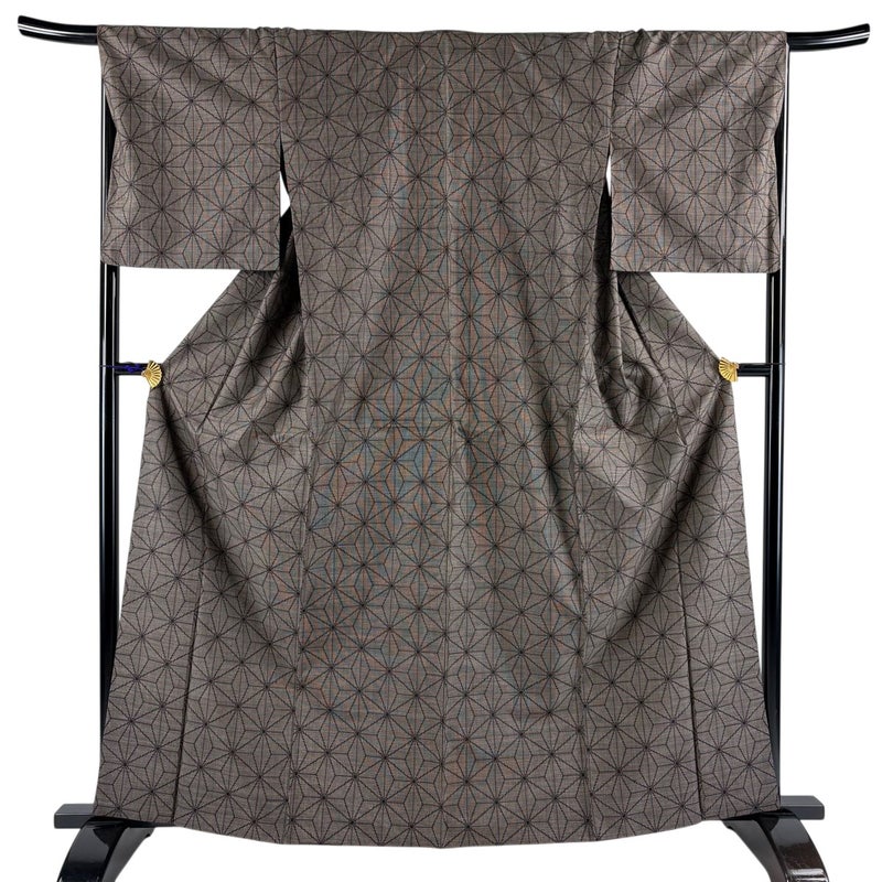 【着物ランク】秀品 【素材】正絹 【身丈】約163.5cm 【裄丈】約67.5cm 【袖丈】約49cm 【袖幅】約33.5cm 【前幅】約23cm 【後幅】約30.5cm 【サイズ】L 【着物仕立て】袷 【着用時期】10~5月 【状態ランク】ランクC 【着物着用シーン】気軽なパーティー、観劇、食事会、正月、気軽なお茶会、街着