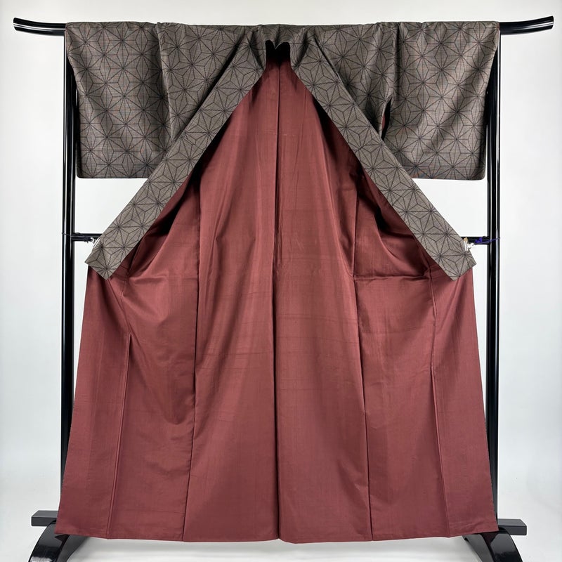 普段着やおしゃれ着として人気の紬でございます。 元々は日常着として着用していたので、その土地の風土に合った様々な種類がある素敵な一品です。 ※身丈・裄丈の縫込みの長さは測っておりません。 上前にシミ、衿周りや両袖口中に汚れがございます。 裏地両脇と裏地所々に汗シミがございます。 ご購入の際はその点ご留意ください。 ※なお、厳しく商品の状態確認を行っておりますが、記載の汚れ以外にも見落とし箇所がある可能性がある旨ご了承いただけますと幸いです。 沢山の商品の中からご覧いただき誠にありがとうございます。