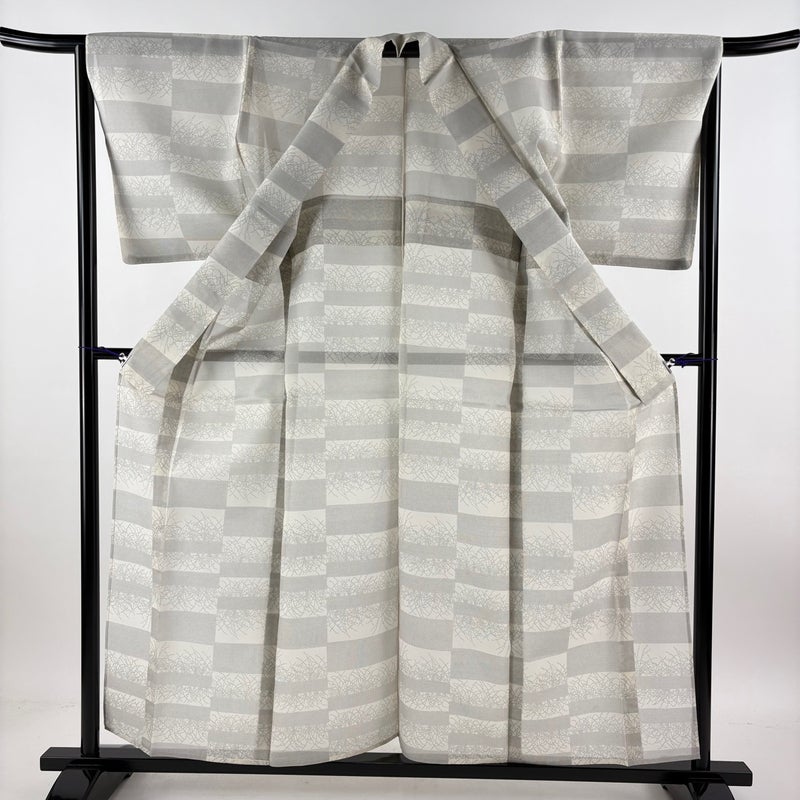 【紬】 灰色系 灰白 名品 B 約150cm~約159cm 裄丈66cm (M)size 袖丈49cm 9990-29990 五万以下
