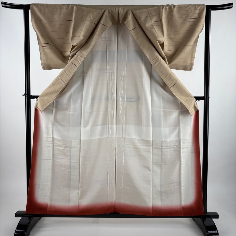 【着物ランク】秀品 【素材】正絹 【身丈】約160cm 【裄丈】約62cm 【袖丈】約49.5cm 【袖幅】約32cm 【前幅】約23cm 【後幅】約28.5cm 【サイズ】S 【着物仕立て】袷 【着用時期】10~5月 【状態ランク】ランクA 【着物着用シーン】気軽なパーティー、観劇、食事会、正月、気軽なお茶会、街着