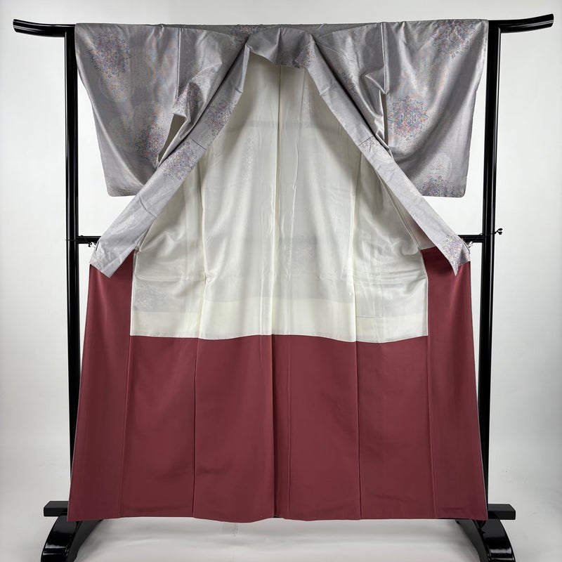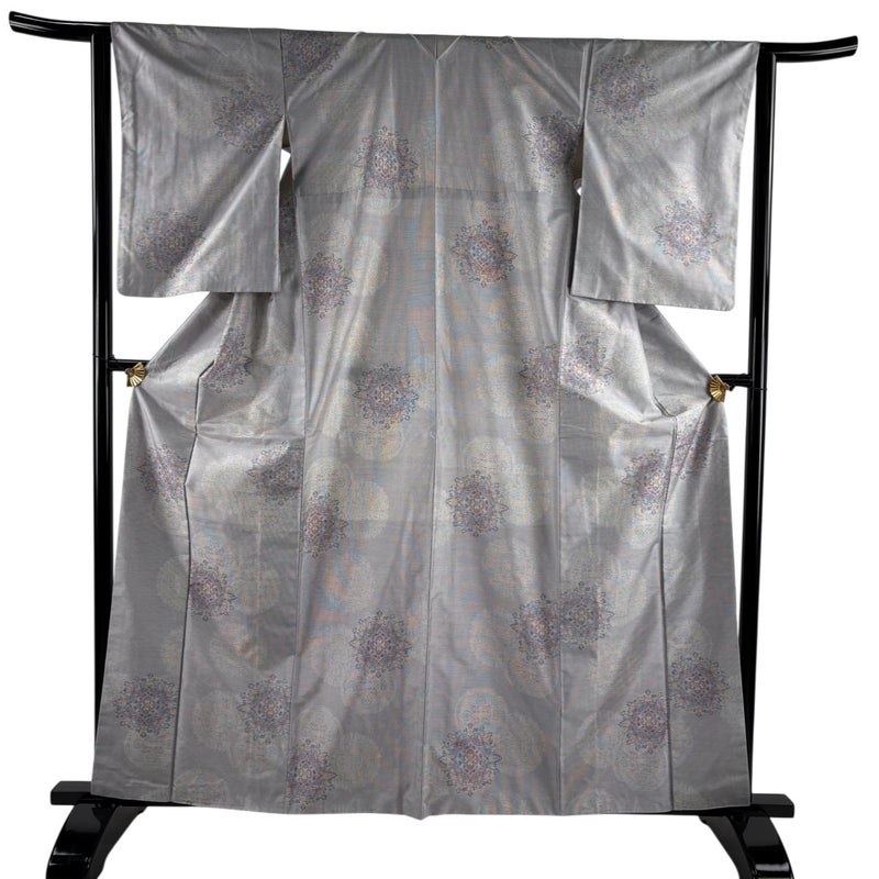 【着物ランク】秀品 【素材】正絹 【身丈】約161.5cm 【裄丈】約63cm 【袖丈】約55cm 【袖幅】約32.5cm 【前幅】約23.5cm 【後幅】約29cm 【サイズ】S 【着物仕立て】袷 【着用時期】10~5月 【状態ランク】ランクA 【着物着用シーン】気軽なパーティー、観劇、食事会、正月、気軽なお茶会、街着