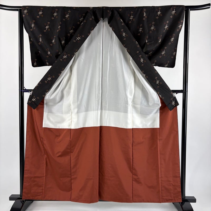 【紬】 茶系 焦茶色 秀品 A 約160cm~約169cm 裄丈63cm-64cm (M)size 袖丈49cm 7990-9980 美品 二万以下