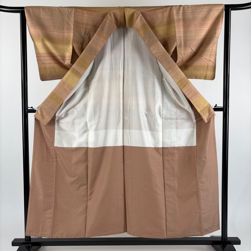 【紬】 茶系 薄茶色 秀品 B 約150cm~約159cm 裄丈63cm-64cm (S)size 袖丈49cm 4000-7980 二万以下