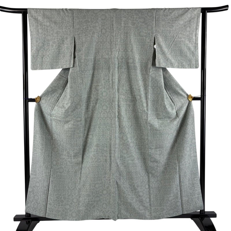 【紬】 灰色系 灰緑 秀品 B 約150cm~約159cm 裄丈63cm-64cm (S)size 袖丈46cm以下 4000-7980 二万以下