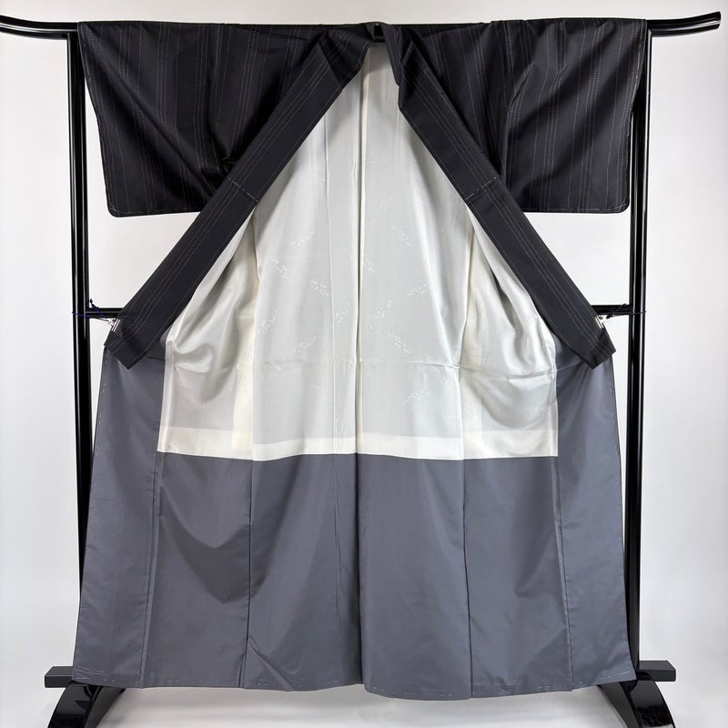 【紬】 黒系 墨色 秀品 A 約160cm~約169cm 裄丈65cm (M)size 袖丈46cm以下 7990-9980 美品 二万以下
