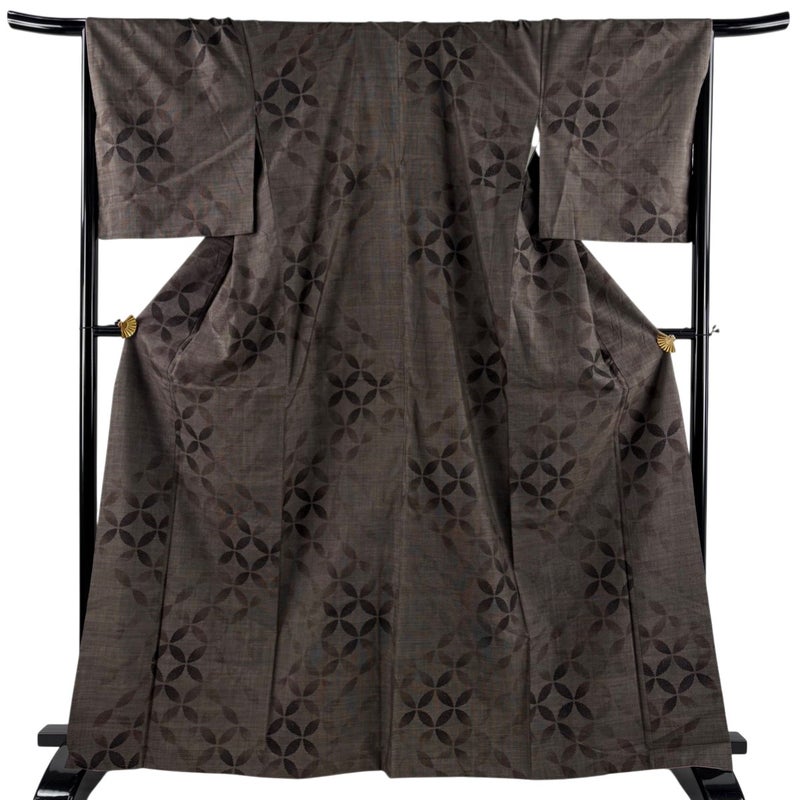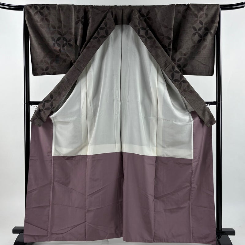 【紬】 茶系 焦茶色 秀品 B 約160cm~約169cm 裄丈67cm-68cm (L)size 袖丈49cm 4000-7980 二万以下