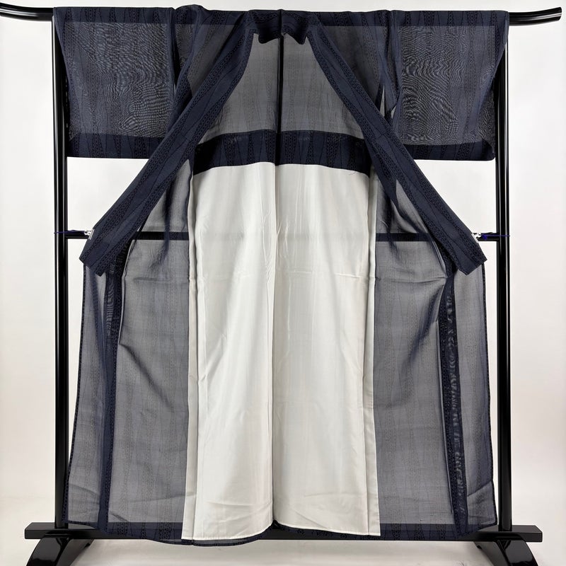 【紬】 青系 濃紺 秀品 B 約150cm~約159cm 裄丈66cm (M)size 袖丈46cm以下 9990-29990 二万以下