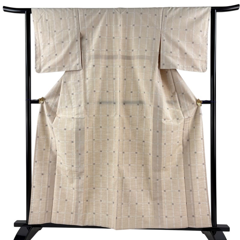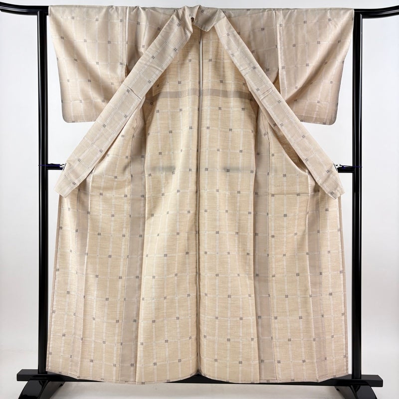 【紬】 白系 ベージュ 秀品 C 約150cm~約159cm 裄丈63cm-64cm (S)size 袖丈49cm 7990-9980 二万以下