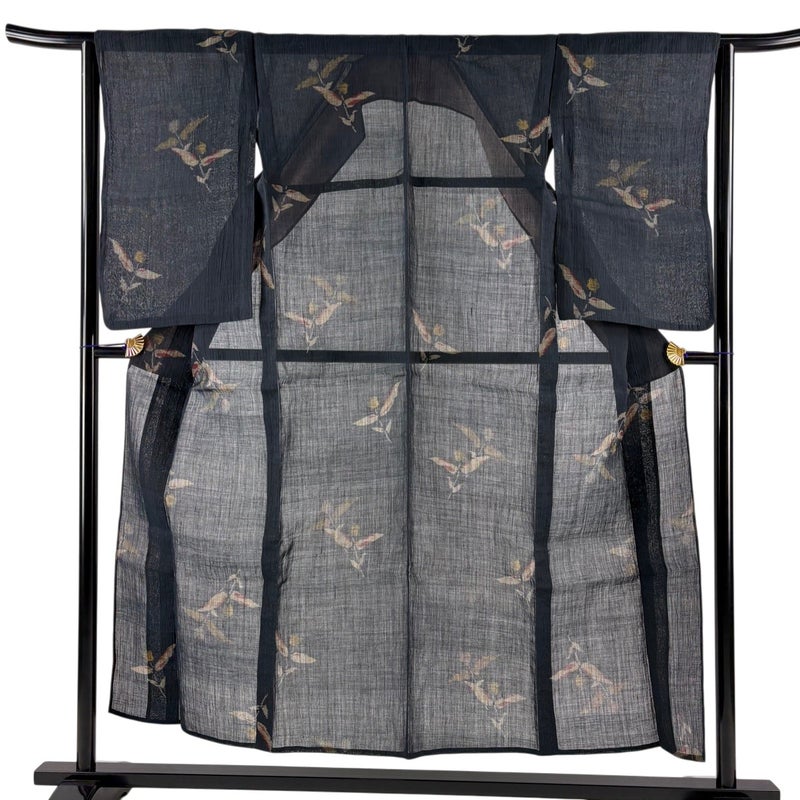 【着物ランク】秀品 【素材】正絹 【身丈】約152cm 【裄丈】約63.5cm 【袖丈】約64.5cm 【袖幅】約32.5cm 【前幅】約24cm 【後幅】約31cm 【サイズ】S 【着物仕立て】薄物 【着用時期】7~8月 【状態ランク】ランクA 【着物着用シーン】気軽なパーティー、観劇、食事会、正月、気軽なお茶会、街着