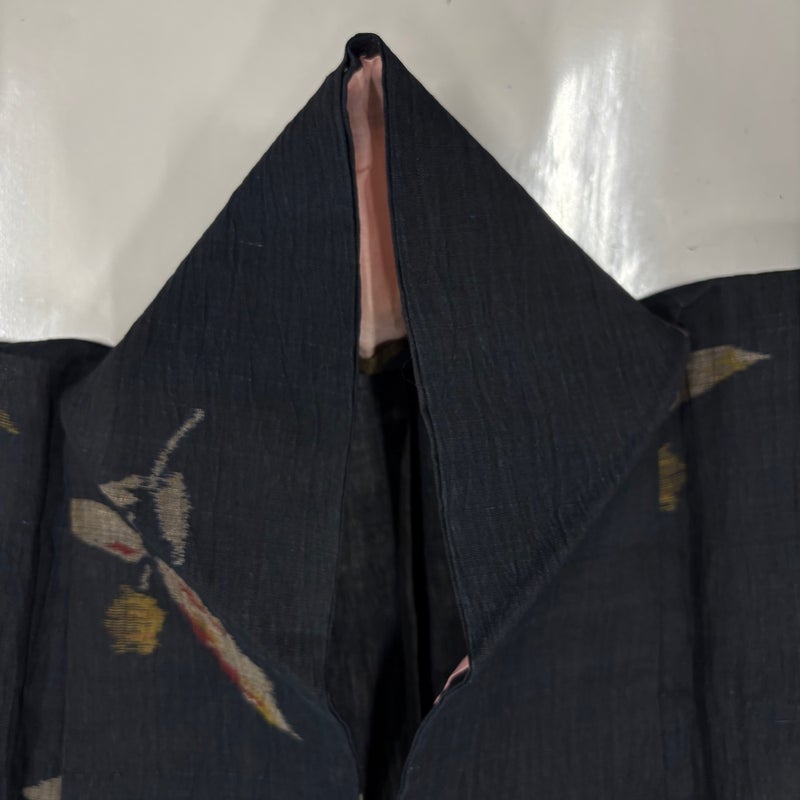 【紬】 黒系 墨色 秀品 A 約150cm~約159cm 裄丈63cm-64cm (S)size 袖丈61cm~90cm 9990-29990 美品 二万以下