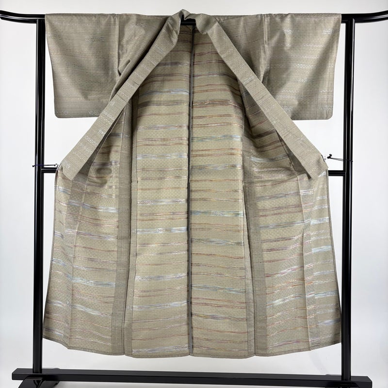 【着物ランク】秀品 【素材】正絹 【身丈】約150.5cm 【裄丈】約62cm 【袖丈】約45cm 【袖幅】約32cm 【前幅】約24.5cm 【後幅】約29cm 【サイズ】S 【着物仕立て】単衣 【着用時期】6/9月 【状態ランク】ランクB 【着物着用シーン】気軽なパーティー、観劇、食事会、正月、気軽なお茶会、街着