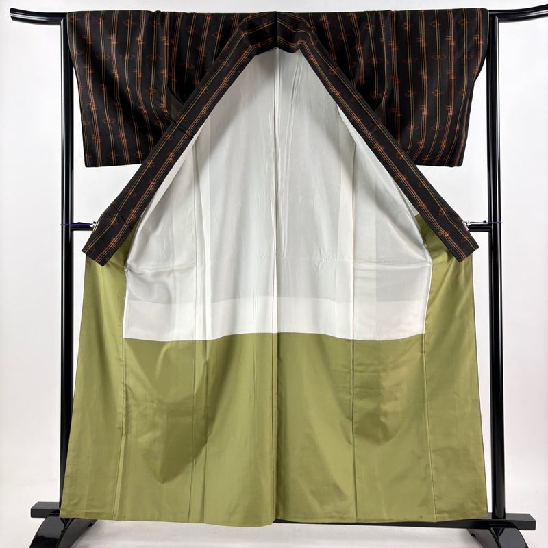 【紬】 茶系 焦茶色 名品 B 約150cm~約159cm 裄丈63cm-64cm (S)size 袖丈49cm 9990-29990 二万以下