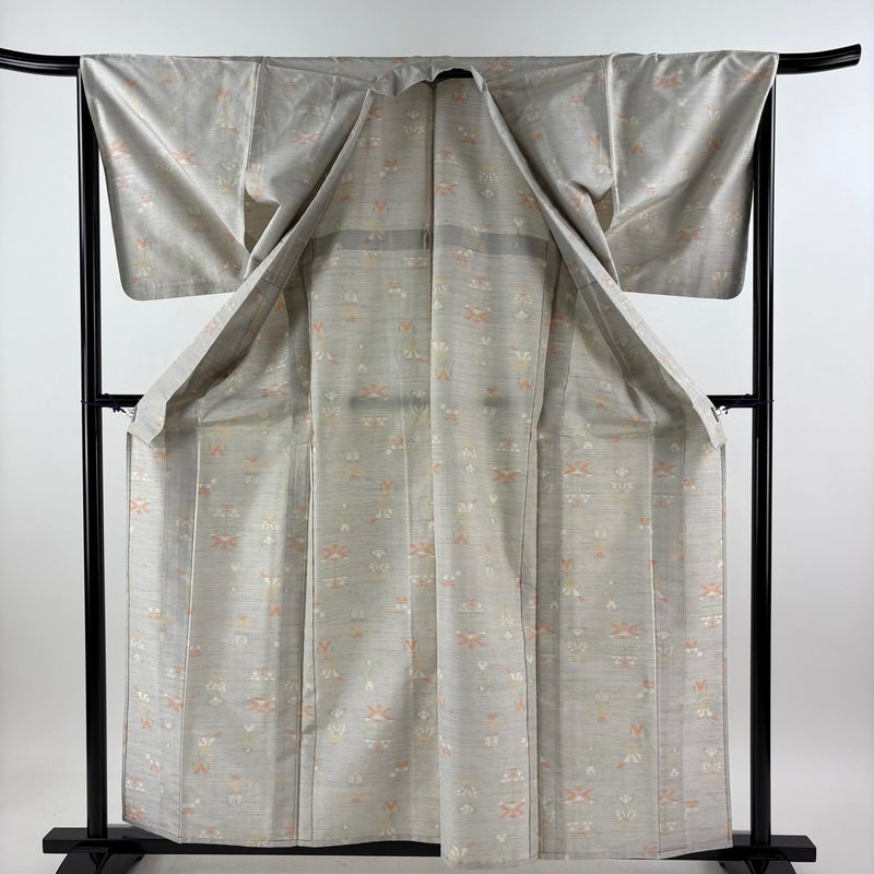 【紬】 灰色系 灰色 優品 B 約150cm~約159cm 裄丈66cm (M)size 袖丈48cm 4000-7980 二万以下