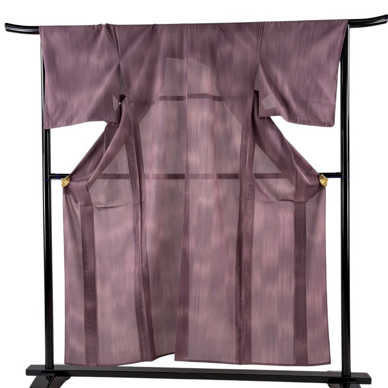 【着物ランク】優品 【素材】正絹 【身丈】約154cm 【裄丈】約67cm 【袖丈】約48.5cm 【袖幅】約34.5cm 【前幅】約23cm 【後幅】約28cm 【サイズ】M 【着物仕立て】薄物 【着用時期】7~8月 【状態ランク】ランクA 【着物着用シーン】気軽なパーティー、観劇、食事会、正月、気軽なお茶会、街着