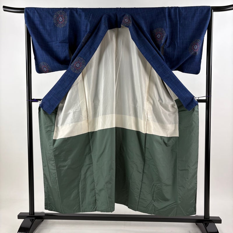 【紬】 青系 藍色 優品 B 約150cm~約159cm 裄丈66cm (M)size 袖丈49cm -3980 二万以下