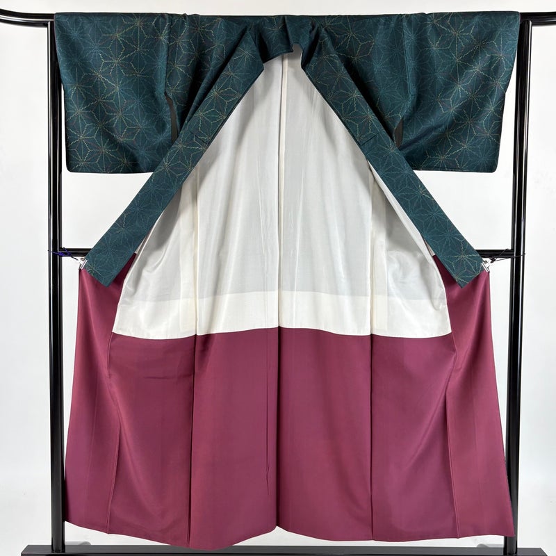 【着物ランク】優品 【素材】正絹 【身丈】約153cm 【裄丈】約63cm 【袖丈】約45cm 【袖幅】約32.5cm 【前幅】約24cm 【後幅】約30.5cm 【サイズ】S 【着物仕立て】袷 【着用時期】10~5月 【状態ランク】ランクA 【着物着用シーン】気軽なパーティー、観劇、食事会、正月、気軽なお茶会、街着