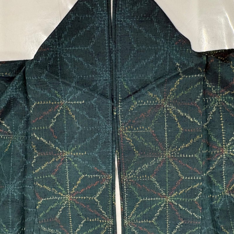 【紬】 緑系 深緑 優品 A 約150cm~約159cm 裄丈63cm-64cm (S)size 袖丈46cm以下 4000-7980 美品 二万以下