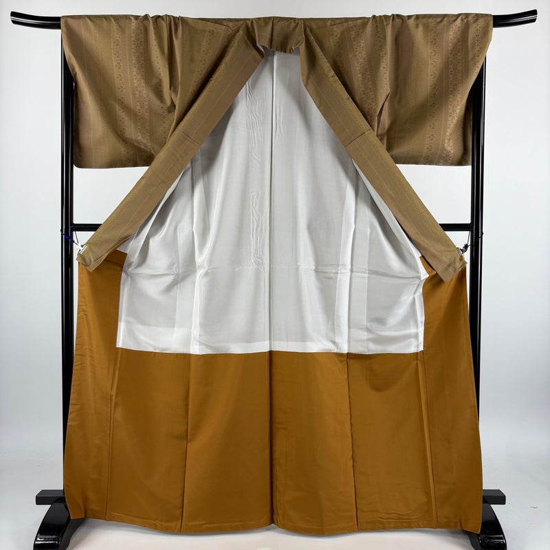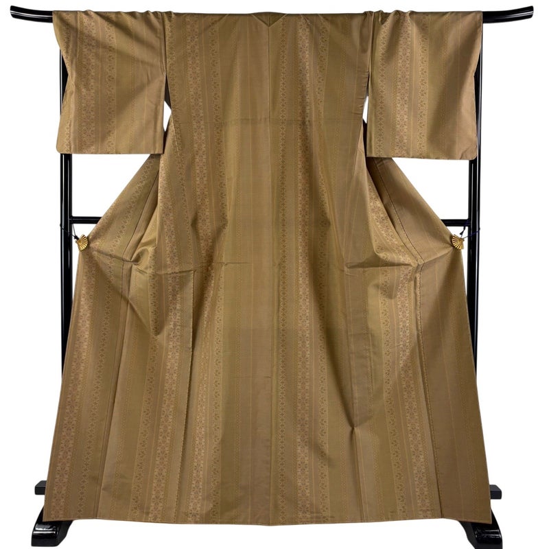 【着物ランク】優品 【素材】正絹 【身丈】約167.5cm 【裄丈】約68cm 【袖丈】約49cm 【袖幅】約35cm 【前幅】約26cm 【後幅】約30cm 【サイズ】L 【着物仕立て】袷 【着用時期】10~5月 【状態ランク】ランクA 【着物着用シーン】気軽なパーティー、観劇、食事会、正月、気軽なお茶会、街着