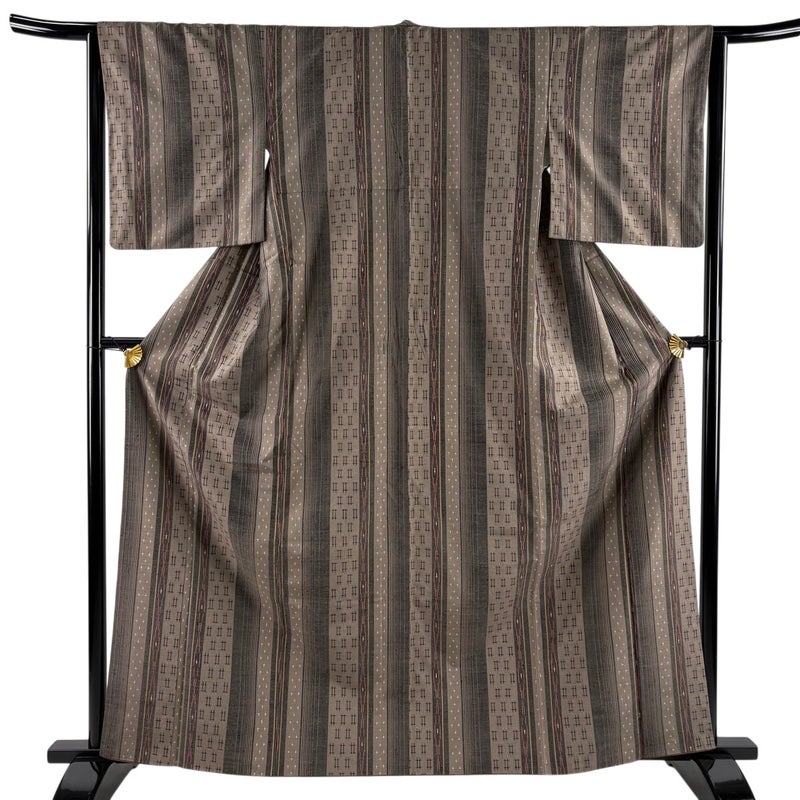普段着やおしゃれ着として人気の紬でございます。 元々は日常着として着用していたので、その土地の風土に合った様々な種類がある素敵な一品です。 ※身丈・裄丈の縫込みの長さは測っておりません。 両袖口中に汚れがございます。 八掛に小さなシミがございます。 リユース品としては目立った染み傷なく、状態の良いお品でございます。 ※なお、厳しく商品の状態確認を行っておりますが、記載の汚れ以外にも見落とし箇所がある可能性がある旨ご了承いただけますと幸いです。 沢山の商品の中からご覧いただき誠にありがとうございます。