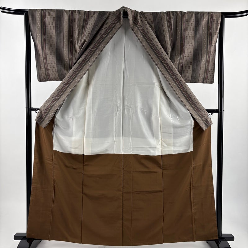 【紬】 茶系 薄茶色 優品 A 約160cm~約169cm 裄丈63cm-64cm (M)size 袖丈48cm 4000-7980 美品 二万以下