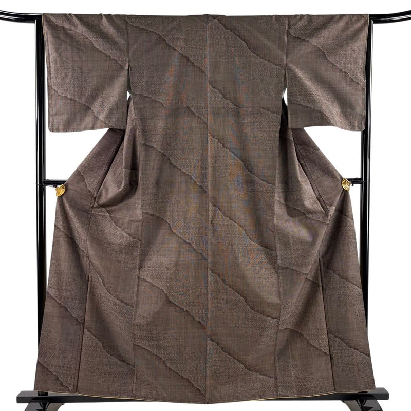【着物ランク】優品 【素材】正絹 【身丈】約161cm 【裄丈】約64cm 【袖丈】約49cm 【袖幅】約32.5cm 【前幅】約24cm 【後幅】約30.5cm 【サイズ】M 【着物仕立て】袷 【着用時期】10~5月 【状態ランク】ランクA 【着物着用シーン】気軽なパーティー、観劇、食事会、正月、気軽なお茶会、街着